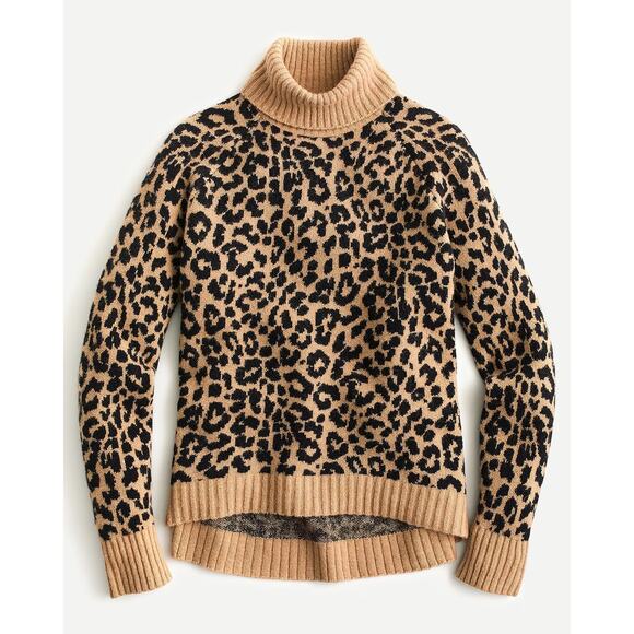 J. Crew Turtleneck Sweater Leopard Print in Supersoft Yarn Tan Black Small