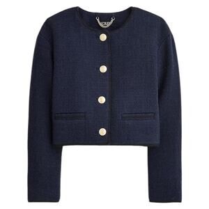 NEW J. Crew Tweed Bomber Lady Jacket Wool Blend Navy Gold Button