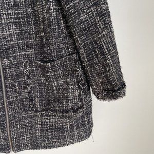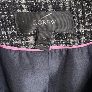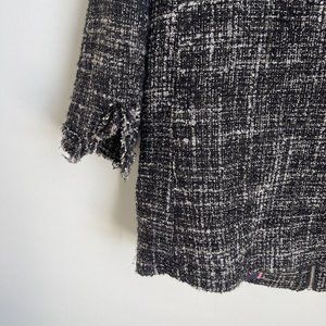 J Crew Tweed Swing Lady Coat in Raven Black Fringed Trim