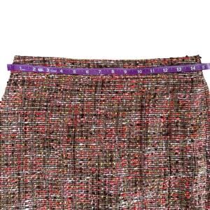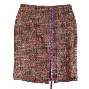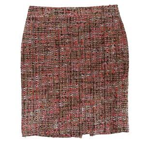 Elegant tweed pencil skirt. Features a multicolor Brown and pink pattern. Lots of texture. Perfect for any occasion.