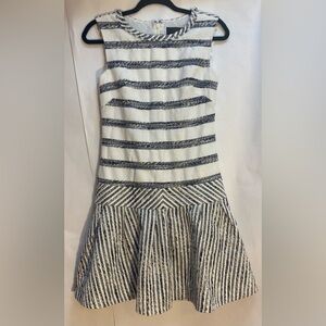 J. Crew Tweed-Striped Drop-Waist Dress Blue White Size 00