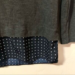 J. Crew Mercantile dark grey long sleeve with navy blue and white polka dot shirttail