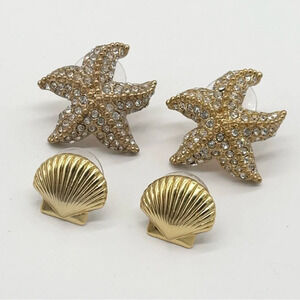 J. Crew Two Pair Shell and Starfish Earrings. Starfish is approximately 1” and Shell is approximately. .5”.
