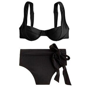 J. Crew Underwire Criss-Cross Straps High-cut Waist Bikini, Black NWT
