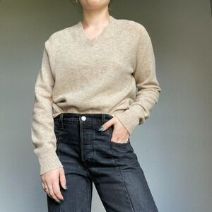 J. Crew Unisex Slim 100% Lambswool Tan Camel V Neck Sweater Sz sweater S