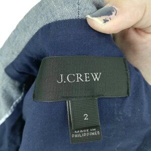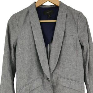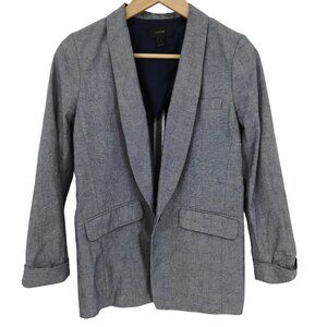 J Crew Unstructured Linen Cotton Boyfriend Blazer Size 2 Blue One Button Pockets