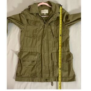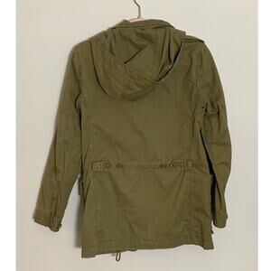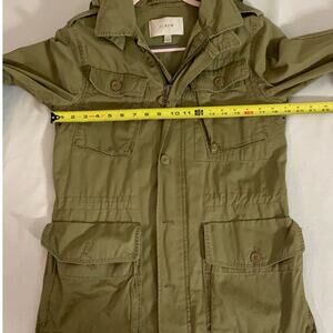 Great green jacket- zippered and button closure. Women's size small with measurements in pictures.