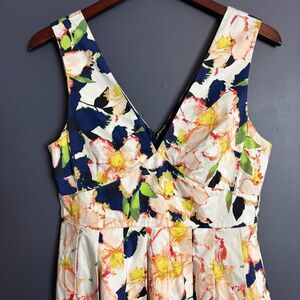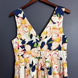 J. Crew V Neck Fit & Flare Blue Floral Dress Cotton Spandex Size 8 Spring Summer