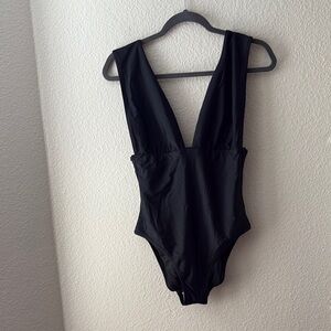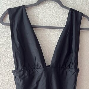 J. Crew V Neck One Piece Swim Suit Size 8 Solid Black Wide Shoulder Straps