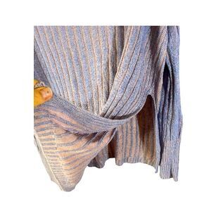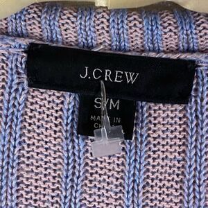 New without tags J. Crew V-neck sweater in a blue and pink ribbed knit. Lightweight linen-cotton blend, ideal for spring and summer. Long sleeves with a relaxed, oversized fit.