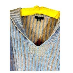 J Crew V Neck Ribbed Knit Sweater Blue Pink Small Medium