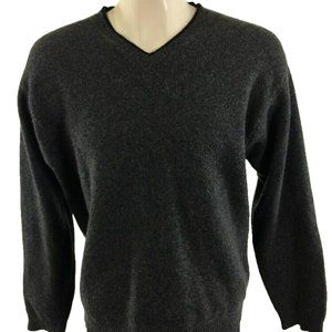 J Crew VNeck 100% Lambswool Sweater L Gray Pullover Golf Mens