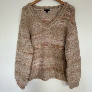 J. Crew V-Neck Beige Space Dye Knit Sweater Size Medium Wool Alp…
