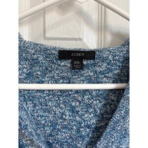 J. Crew V-Neck Cotton Blend Hoodie in Blue Marled Yarn XXL