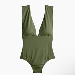J. Crew V-Neck Plunge One-Piece Swimsuit in Olive Green Sz 24 Plus NEW