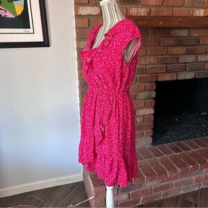 J. Crew V-Neck Ruffle Mini Dress in Tossed Boquet Red Pink Sz 2