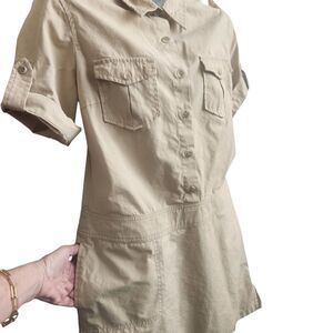 J Crew VTG Utility Shirt Dress-Tan-Side & Chest Pockets-Roll Tab Sleeves-Y2K-10