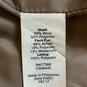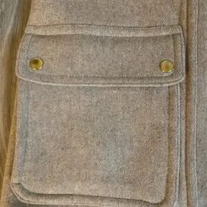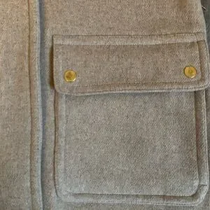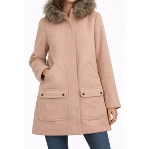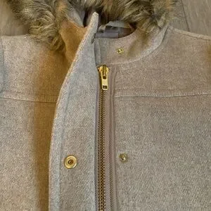 Classic heather tan outerwear by J. Crew. Ideal for versatile styling. Large front pockets with snap closures. Full zipper and snap closures to keep out the cold. Faux fur Eskimo style hood.