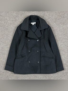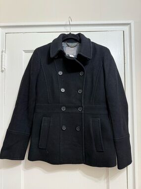 Coat is in good preowned condition with minimal signs of wear (some pilling on undersides of sleeves, some wear on pocket buttons; see last four photos for close-ups).