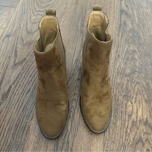 J Crew Vegan Suede Chelsea Ankle Bootie Slip On Stacked Wood Heel