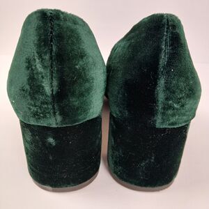 J. Crew Velvet Heels Women 7.5 Green Block Heel Old Money Quiet Luxury Office