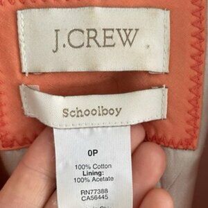 "One of our all time favorites and best sellers. The schoolboy blazer. Updated i a plush velvet with a slightly shrunken, chicer fit and authentic haberdashery- inspired desig details like a lapel buttonhole and a ticket pocket. Beautiful old J Crew Schoolboy cut blazer in a vivid orange, fully lined. In excellent condition.