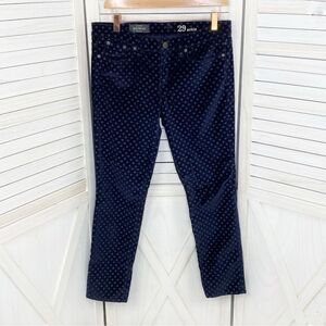 J. Crew Velvet Polka Dot Toothpick Ankle Pants Navy Blue 29 Skinny Preppy