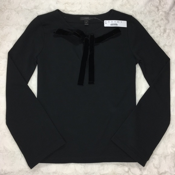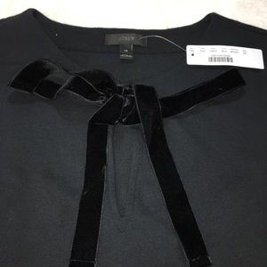 NWT J. Crew Velvet Tie Front Top. Black top with velvet tie front. 100% cotton.