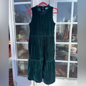 Gorgeous j crew velvet midi tiered dress. Never been worn, with tags attached. Stunning emerald green color! Pullover style. Machine washable. Falls below knee, 45" from high point of shoulder (based on a size 6).