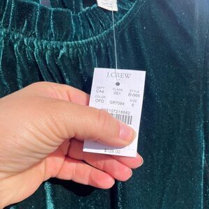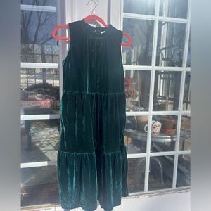 Gorgeous j crew velvet midi tiered dress. Never been worn, with tags attached. Stunning emerald green color! Pullover style. Machine washable. Falls below knee, 45" from high point of shoulder (based on a size 6).