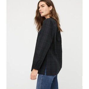 J. Crew Velvet-Trimmed V-Neck Tunic in Black Watch Tartan Size XS
