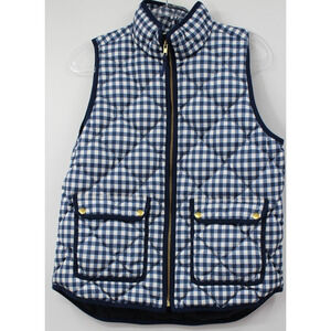 J. Crew Vest Down Puffer Womens Navy White Full Zip Plaid Gingham Feather Medium