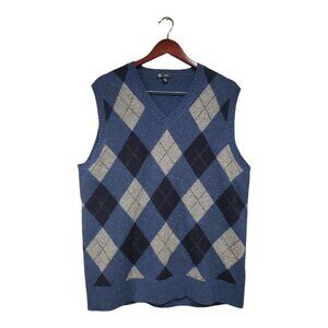 J Crew Vest Sweater Mens Large Blue Check Lambswool V Neck Classic Knit Pullover