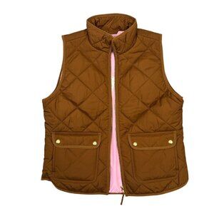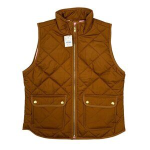 J Crew Vest Womens M Quilted Puffer Full Zip Snap Pockets Brown BU262 NWT