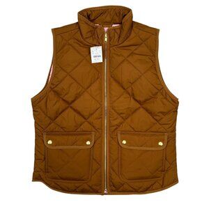 J Crew Vest Womens M Quilted Puffer Full Zip Snap Pockets Brown BU262 New NWT