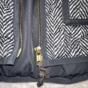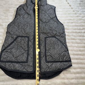This is a preowned J. Crew Vest Womens Small S Gray Black Quilted Full Zip Pockets Down. It is in good preowned condition. Please look at the pictures for the condition of the vest.