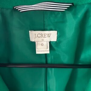 Emerald green pea coat by J. Crew. Cleaning out my closet but I have loved this coat and the color. In great condition, just a small rip under one of the arms.