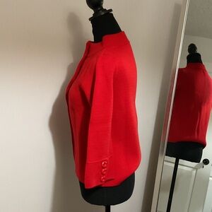 Chic and bold red pea coat. Features a classic button-up design. Ideal for a stylish look.