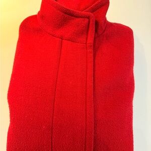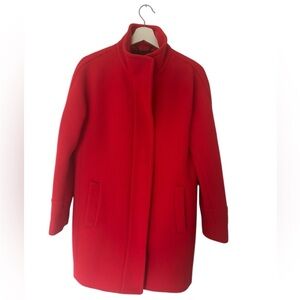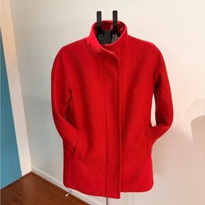 Bright red wool pea coat by J. Crew. Sleek and stylish design. Ideal for cool weather. Some minor pilling from wear.