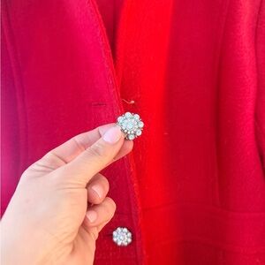 Bright red J.Crew pea coat with elegant button details. Perfect for a stylish look. One of the buttons fell off. I have the button and it will be shipped with the coat.