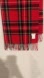 Classic tartan pattern. Bold red with fringe accents. Perfect for layering.