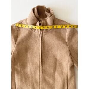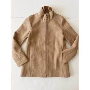 J Crew Village Coat Women 0 Tan Wool Blend Full Zip Mock Neck Lined Pockets