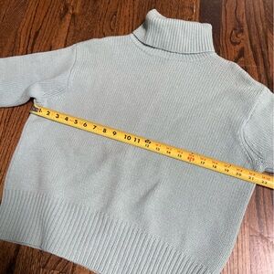 J. Crew Vintage 100% Lambs Wool Turtleneck Sweater in amazing, like new condition but there is a small hole I fixed at the front of band, see last pic. Size medium. Beautiful blue aqua color. A rare gem.