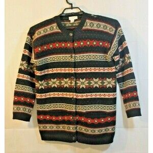 J Crew Vintage Cardigan 100% Shetland Wool Button Front Sweater Christmas Size S