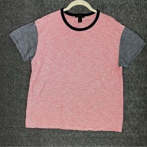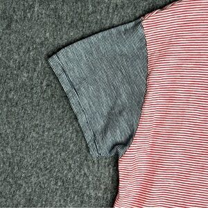 J Crew T shirt Red & White Striped Short Sleeve Tee Medium Black Crew Gray Sleeve