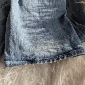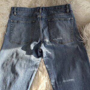 2006 Size 33 J Crew vintage boot leg jeans. Low rise. Good Condition. They fit between size 12 and size 14. Please note there is slight wear on leg cuffs and a small, very faint pink dot on the left side of the right back pocket (see picture). This makes them well-loved! 33" Waist and 31" Inseam with a 13" rise. 98% cotton with 2% spandex.