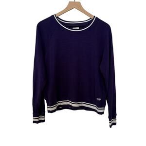 J Crew Vintage Fleece Women's M Purple Pullover Crew Neck Sweater Tennis Logo