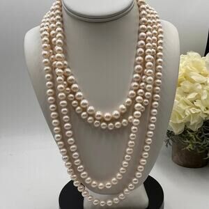 J. Crew Vintage Four MultiStrand Hand Knotted Off White Pearl Layering Necklace