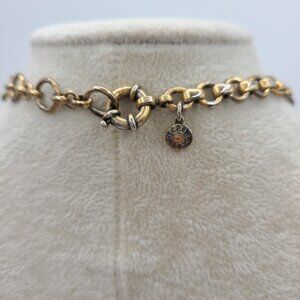 This necklace is in good condition but does have some of the gold plating missing from the chain. Measures 16" with a 2" extender. Priced lower due to missing gold plate.