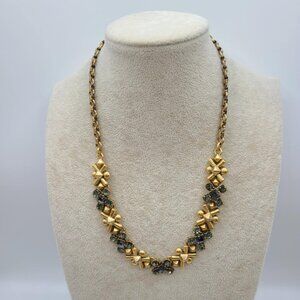 J Crew Vintage Gold Tone Blue Crystal Statement Necklace